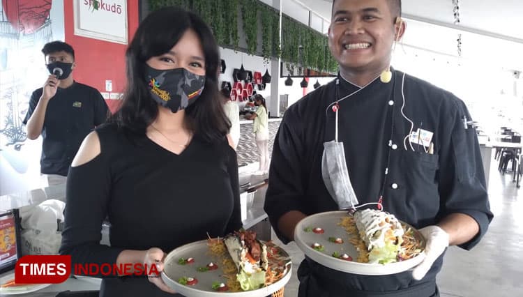 Once it's ready it will look like a taco on a plate. Yohan then paired the nacho or taco like with the sushi. "Why it has to be sushi? Because our hotel has Industrial, Modern, and Japanese theme which fit to sushi," he added.