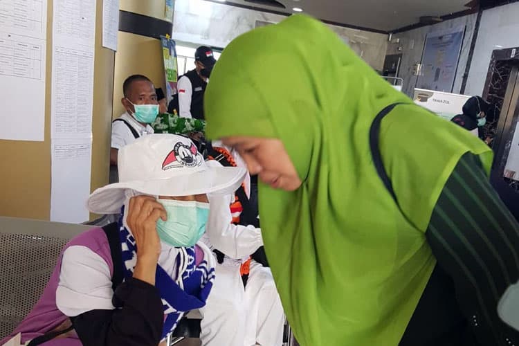 TIMES Jazirah/Khofifah Indar Parawansa, the Chairwoman of Muslimat NU, utilized her time during her pilgrimahge in the Hajj 2024 to visit several ailing pilgrims from East Java. (Photo: MCH 2024 Kemenag RI)